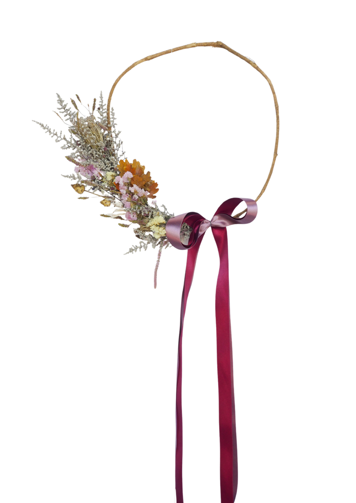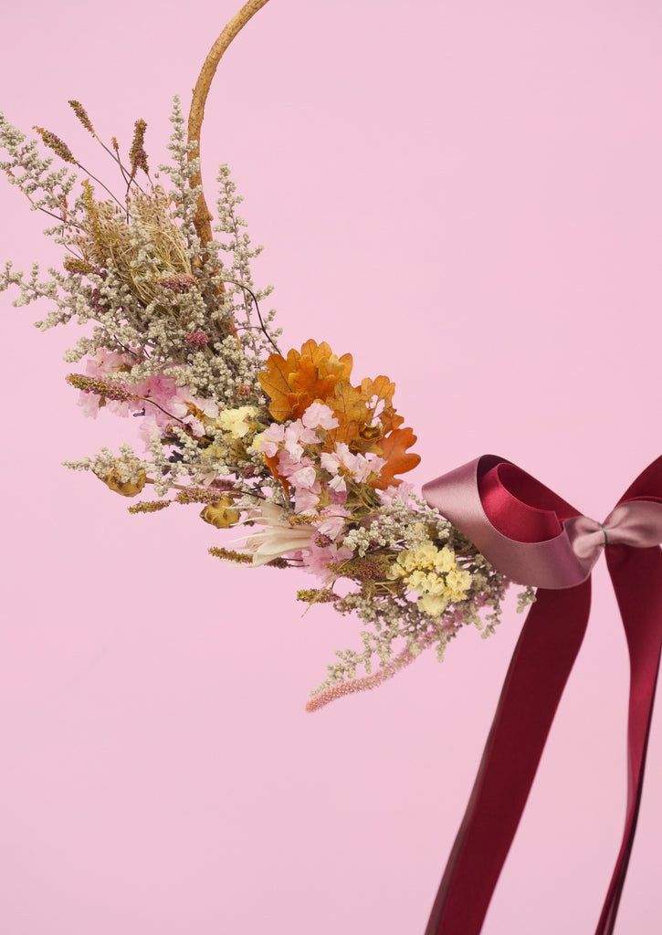 The flowers: The wreaths feature a mixture of dried & preserved flowers that have been painted, dyed or are natural in colour.