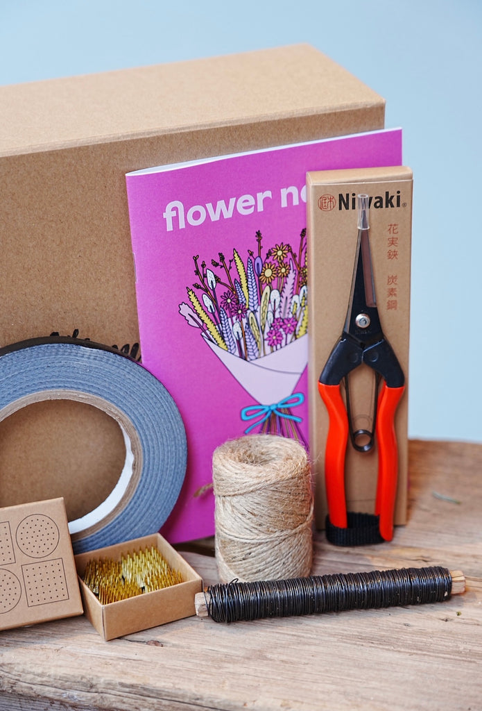 Our delightful Floristry Kit Gift Box has everything a budding flower artist needs to create stunning arrangements. You'll get Niwaki garden snips, a handy mini flower frog set, pot tape, binding wire, twine, and a special THB flower notes A5 notebook to capture your creative moments. All nestled in our gorgeous THB packaging, it's the perfect present for anyone who loves flowers or who is looking to start a career in Floristry.