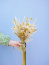 The Little Meadow bouquet is a beautiful soft arrangement of natural, white and yellow dried flowers, hand-tied into a stunning bridal bouquet. A stunning arrangement, perfect for your special day. Elegant long-lasting dried flowers to hold beautiful memories of your day for time to come.
