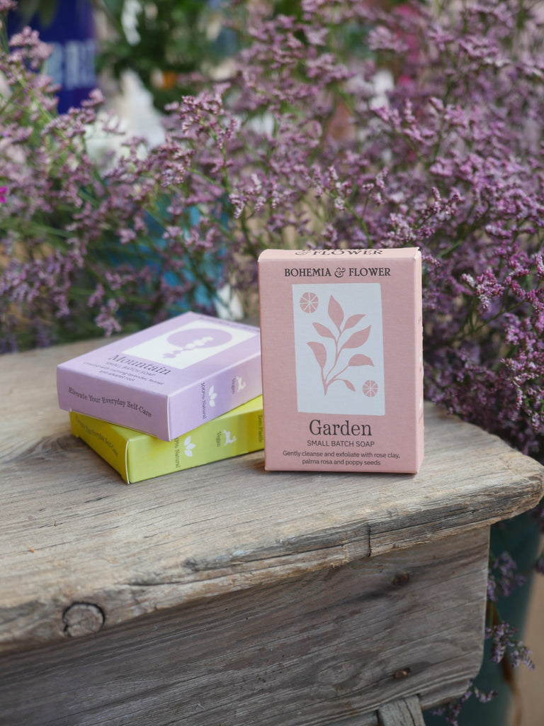 Discover the natural power of Garden Bar Soap, a luxurious vegan cleanse infused with pink clay and botanical essences. French rose clay purifies your skin by drawing out impurities, while finely ground poppy seeds provide gentle exfoliation for a radiant complexion. Enriched with soothing Palma Rosa and pure Lavender essential oils, this 105g bar transforms your daily routine into a spa-like ritual.