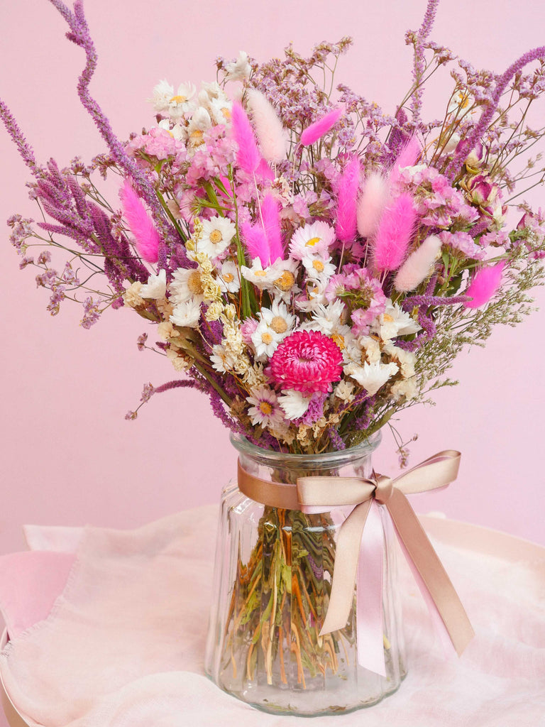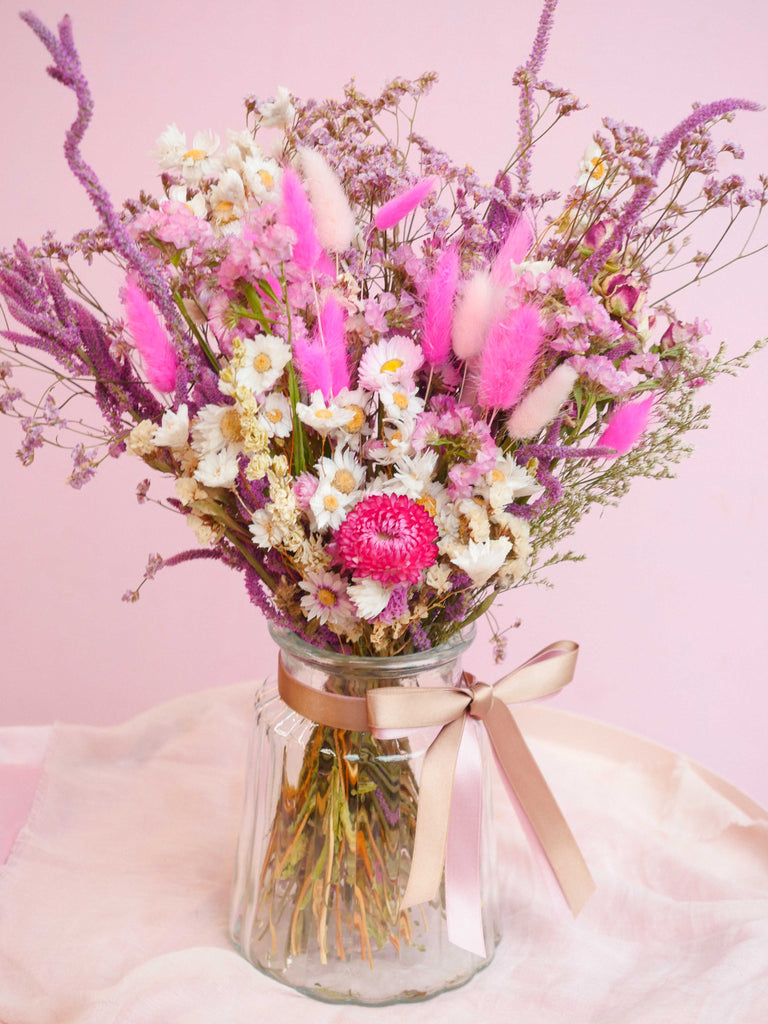 This Rouge Garden Dried Flower Baked Blossom Table Centre Bouquet offers an abundance of pink hues and is sure to make a statement. Its design has a stylish edge that we absolutely love! The bold & beautiful colour palette makes a stunning statement that will stay with you long after your special day. Not only are these flowers a gorgeous addition, they can also be cherished long after your special day!