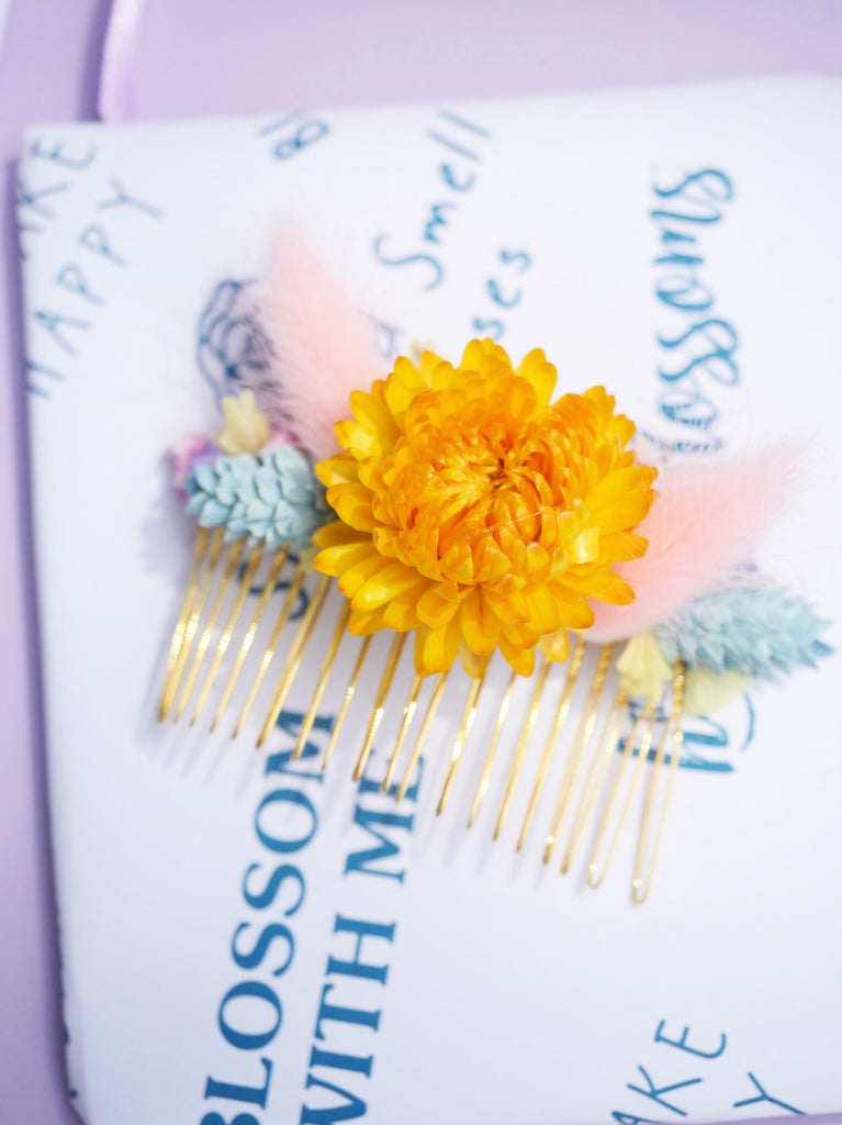 The Sherbert Macaroon Dried Flower Baked Blossom Hair Comb